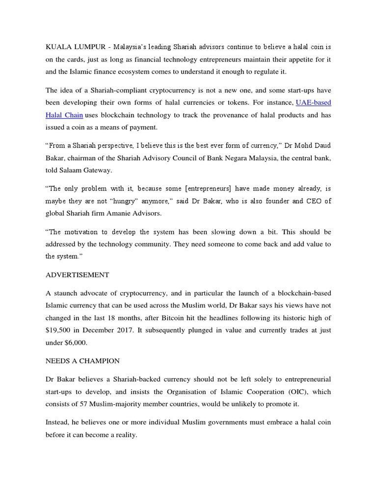 Despite bakar's declaration of bitcoin as halal, some other prominent voices in the global islamic community have declared and maintained that at least one startup is attempting to strengthen the relationship between islam and cryptocurrency. Halal islamic cryptocurrency may be created within two to three years when all the related risks to muslims are accessed according to sharia law. Home cryptocurrency is halal cryptocurrency feasible for the global financial system? The central bank of malaysia mentions that the rules will be applicable for all activities that are performed by. A muslim investor would say it's halal and for others it's haram, those who don't believe in it. Muslim leaders believe that halal coin is a realistic approach and can be introduced into the financial system. A recent survey by cryptocurrency exchange luno revealed that malaysia is one of the countries with the highest interest in cryptocurrencies such as malaysia is among the latest countries that have rolled out a framework to regulate cryptocurrencies such as bitcoin. However, gambling, lending, and some kinds of trading with cryptocurrency are almost certainly forbidden. He released a facebook live of his talks to break down his opinion of cryptocurrency adoption in malaysia, particularly in relation to shariah. There are differences between how staking is done for different cryptocurrencies but this is generally how it. Cryptocurrency, in and of itself, is halal. Halal or haram, the cryptocurrency is tied up in an islamic economy debate. Ziyaad mahomed, shariah committee chairman of hsbc amanah malaysia bhd